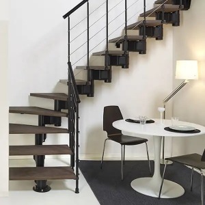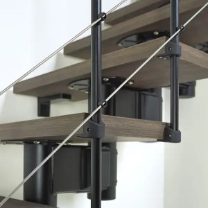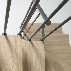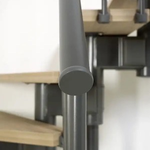 樓梯Spin R是個組合式樓梯,以設計、機能與美學創造出個人風格的生活空間。樓梯主要元件是HPL-ELM層壓踏板,在美學與耐用性間展現最佳折衷。內側欄杆使用030與010A垂直鋼製。該結構是用塗漆鋼鐵,如同欄杆與欄杆柱。可選擇的顏色為壓花白色、黑色與鐵灰色。組合式樓梯在安裝時,可根據高度、走向與旋轉角度進行調整,並具直線結構、L形曲線結構或U形結構可配置。