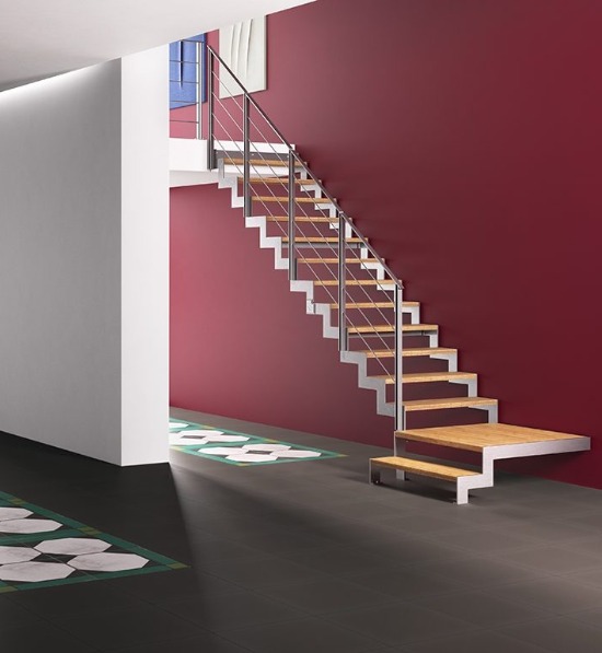 LaFont Fascia複合式樓梯以塗漆鋼或連續雙面不銹鋼結構脫穎而出,遵循踏板的表面圖案。050欄杆以圓形不銹鋼欄桿(直徑34mm與拉絲表面)與縱向鋼管相互連接,並覆蓋不銹鋼圓形扶手。